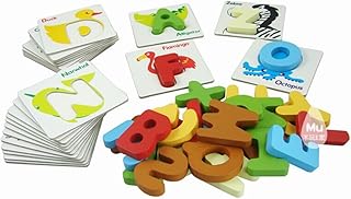 Pixnor Alphabet Cartes flash Animal Lettre en Bois Alphabet Puzzle