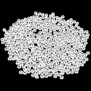 DXLing 600 Pièces Ronde Perles Lettre Kit Acrylique 7 mm Perles Blanches Alphabet avec Lettres A à Z Ronde Perles Alphabet Spacer pour la Fabrication de Bijoux DIY Artisanats Perles Blanches Alphabet