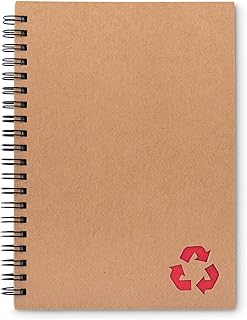 PromotionGift Cahier a Spirales, Papier de Pierre 70 Feuilles lignées Couverture Carton recyclé, Rouge