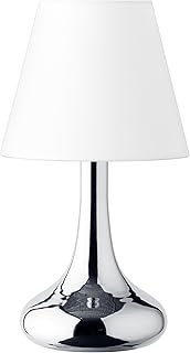 TRIO, Lampe de table, Luis 1xE14, max.40,0 W Verre mat, Blanc, Corps: metal, Chrome Ø:12,0cm, H:32,0cm IP20,Interrupteur tactile 4 niveaux