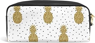 Zzkko Paillettes dorées Ananas sur noir et blanc pois Cuir Fermeture Éclair Trousse Stylo papeterie Sac Cosmétique Maquillage Sac pochette Sac à main