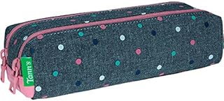 Tann's - Trousse scolaire double grise à pois multicolores en bouteilles recyclées Lou (12133) taille 7 cm