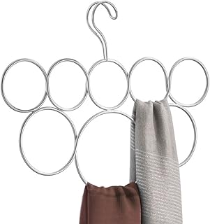 iDesign rangement suspendu à anneaux, rangement foulard en métal pour ne plus froisser, porte écharpe, cravates et ceintures, argenté