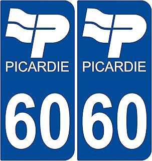 Supstick 2 Stickers Autocollants Plaques Immatriculation Auto Dept 60 Picardie Bleu Foncé Angles Arrondis