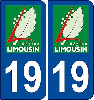Supstick 2 Stickers Autocollants Plaques Immatriculation Auto Dept 19 Limousin Bleu Foncé Angles Arrondis