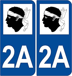 Supstick 2 Stickers Autocollants Plaques Immatriculation Auto Dept 2A Corse Bleu Foncé Angles Arrondis