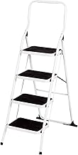 COSTWAY Escabeau Marches Pliant, Echelle Marchepied antidérapant, Escabeau Ménager en Fer, 150kg capacité, environ 80CM, Blanc Noir (4 Marches)