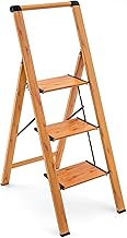 REPLOOD Escabeau 3 marches en bois de hêtre naturel Charge maximale 150 kg Antidérapant Dimensions : 38 x 65 x 66 cm