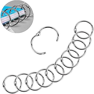 Lazz1on 50 Pièces Anneaux de Livre Classeur à Anneaux Métalliques Alliage Clé Feuilles Mobiles pour Carte d'étude Album Photo Scrapbook Feuilles Artisanat Rideau de Douche
